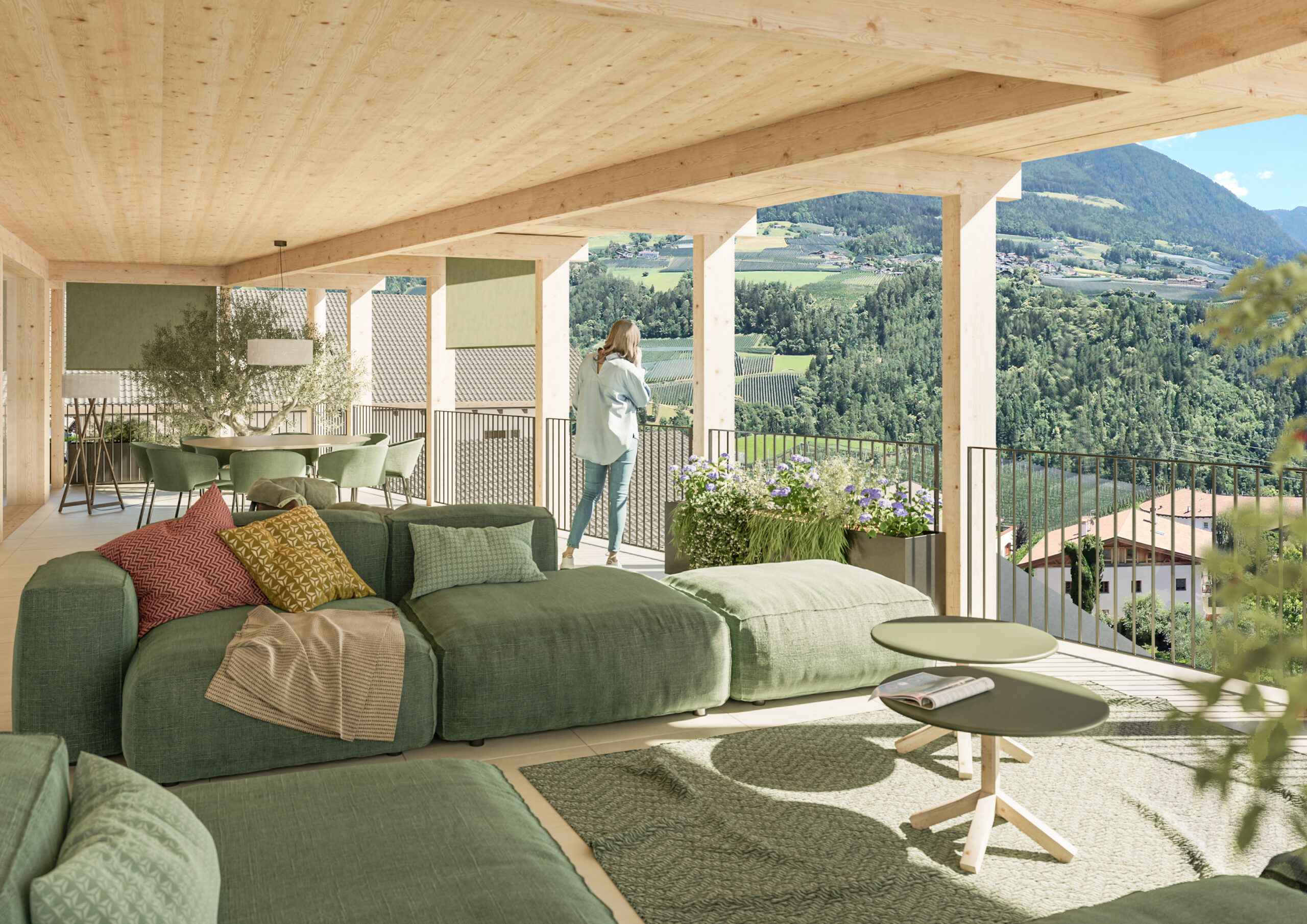 Alle Wohnungen verfügen über eine oder mehrere Terrassen und/oder Balkone und sind mindestens zweiseitig orientiert. Durch den gezielten großflächigen Einsatz von raumhohen Verglasungen sind sämtliche Wohnbereiche hell und lichtdurchflutet und bieten eine hohe Wohnqualität. Umringt von Balkonen wird nicht nur ein fließender Übergang von Innen und Außen geschaffen, sondern gleichzeitig auch eine ideale bauliche Verschattung für die Wohnungen.