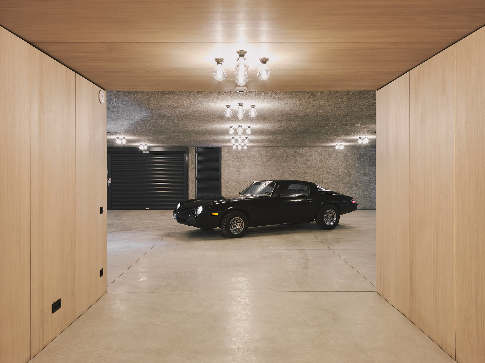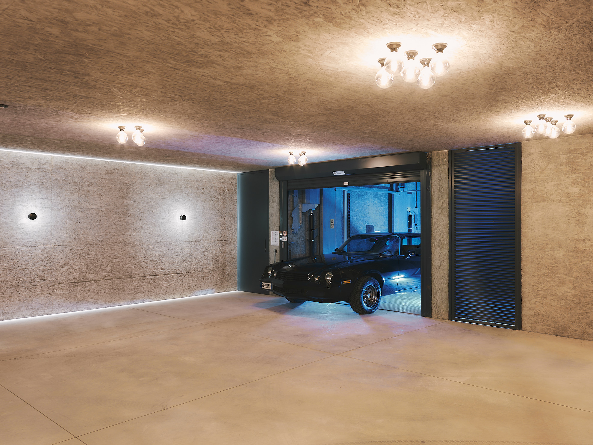 Die Villa erstreckt sich über vier Geschosse, einschließlich eines neuen Untergeschosses für die Garage, das denselben Wohncharakter aufweist. Sichtbetonwände, punktuelle Beleuchtung und warme Holzvertäfelungen im Eingangsbereich schaffen ein modernes und zugleich wohnliches Ambiente.